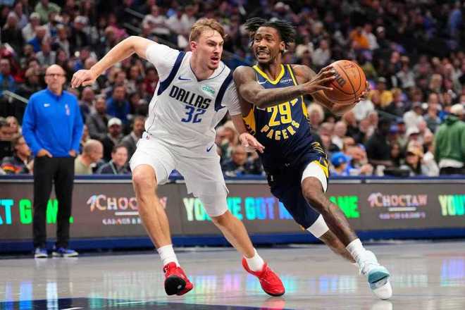 獨行俠上一場主場94-101惜敗衛(wèi)冕冠軍雷霆,步行者過去3場連輸雷霆、灰熊與森林狼遭遇3連敗。本場獨行俠缺少歐文、加福德、埃克薩姆,步行者缺少哈利伯頓、馬瑟林、托平、內(nèi)姆哈德等多位球員。首節(jié)開局獨行俠8-9落后,步行者一波8-2攻勢擴大7分優(yōu)勢,拉塞爾三分開火率隊追到差4分。濃眉哥因為左小腿酸痛提前退賽,步行者再度拉開9分優(yōu)勢,獨行俠繼續(xù)反撲追分,首節(jié)比賽結(jié)束獨行俠25-30落后步行者,拉塞爾單節(jié)10分。